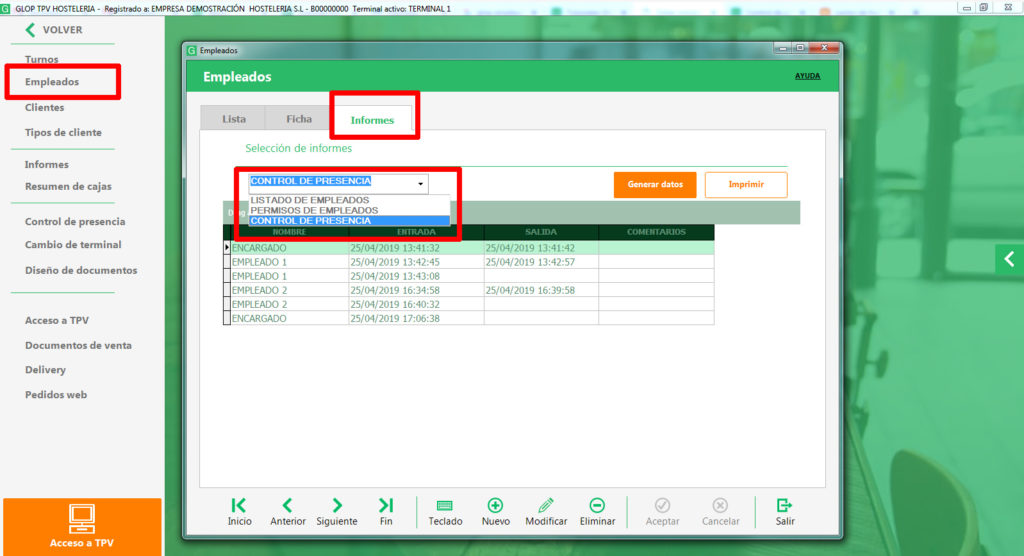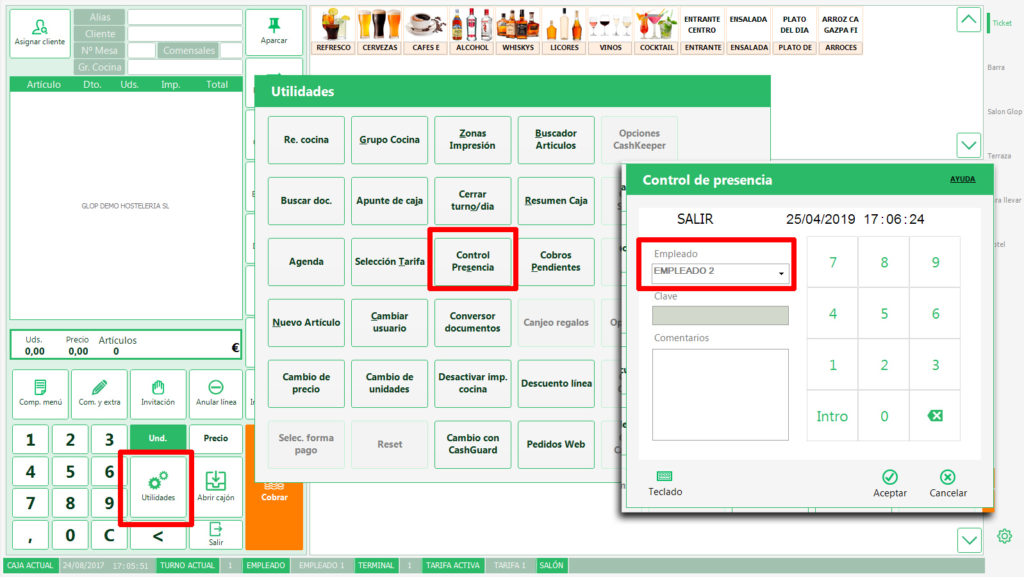✅ Integración total con el TPV. No necesitas cambiar de sistema, el control de presencia funciona dentro del mismo entorno de gestión Glop.